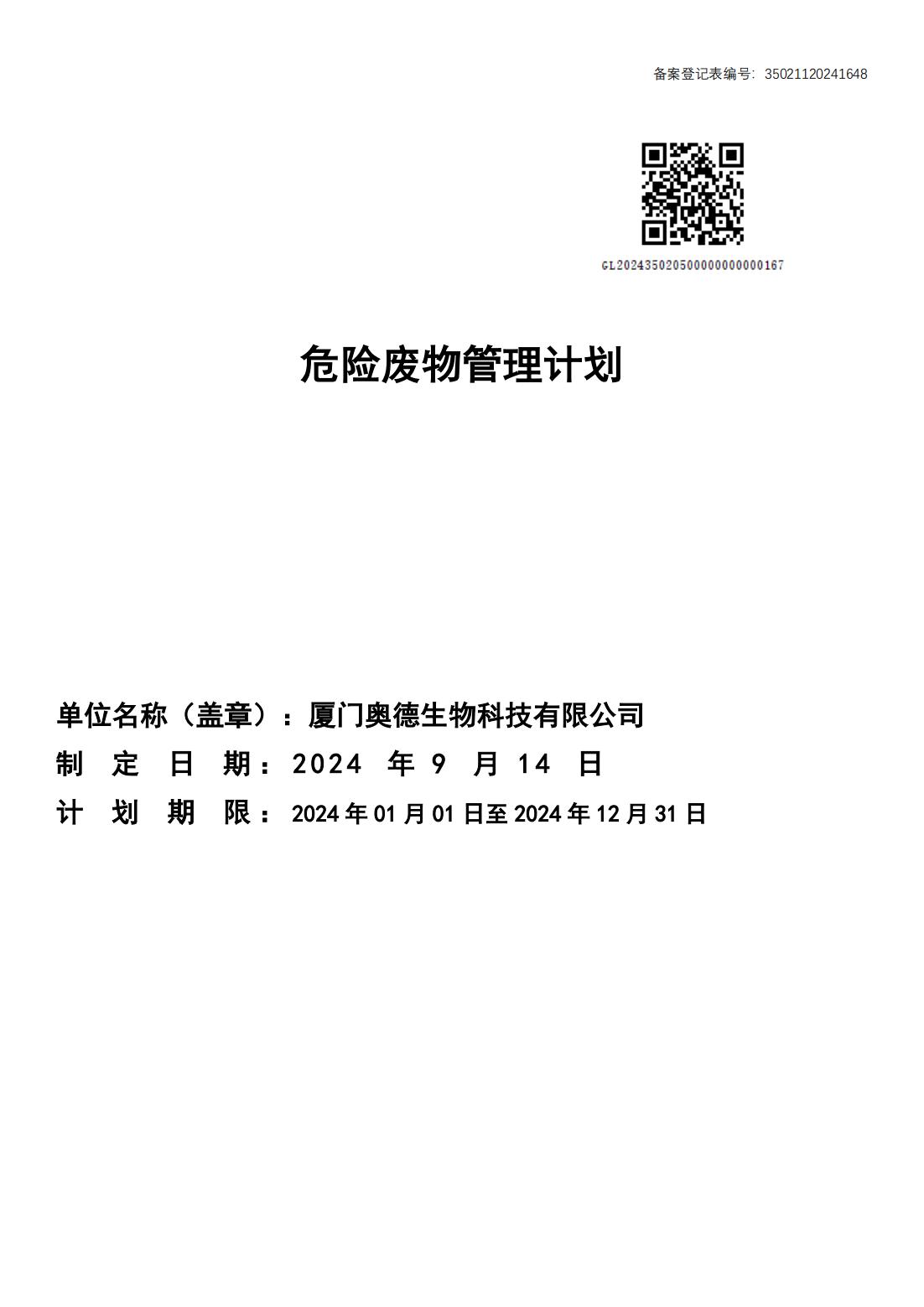 2024年度危險廢物管理計劃